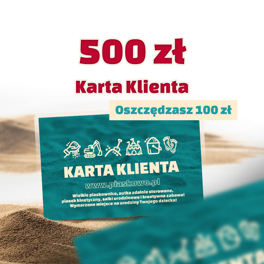 Płacisz 400 zł, a na Twojej karcie pojawia się 500 zł do wykorzystania na dowolne usługi i wejścia w Centrum Zabaw Piaskowo.